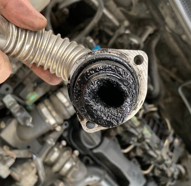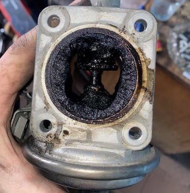 Част от изгорелите газове биват пренасочвани обратно към всмукателния колектор чрез клапан, който с времето се затлачва с нагар и блокира.